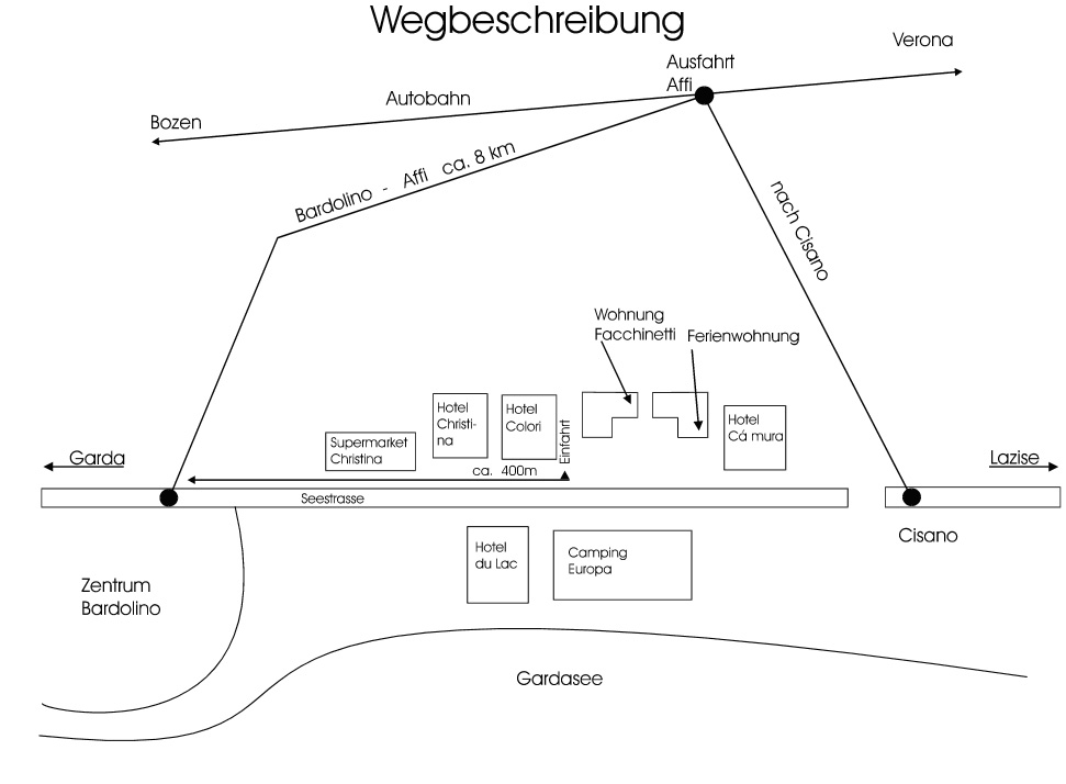 Bardolino - Die Wohnung liegt nur 5 Minuten zu Fuss vom Zentrum entfernt. Längs der schönen Strandpromenande etwas länger.